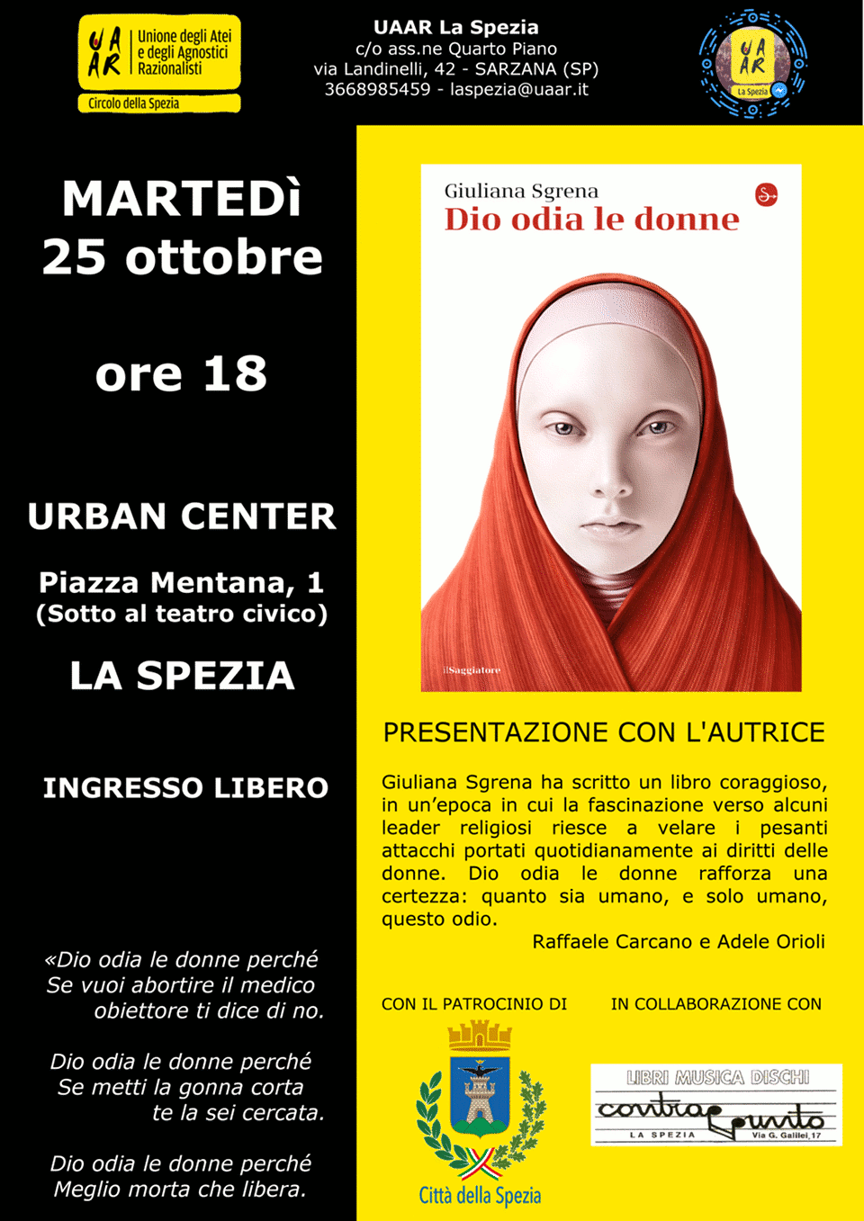 Evento organizzato dal circolo Uaar della Spezia, con la collaborazione della libreria Contrappunto ed il patrocinio del Comune della Spezia.