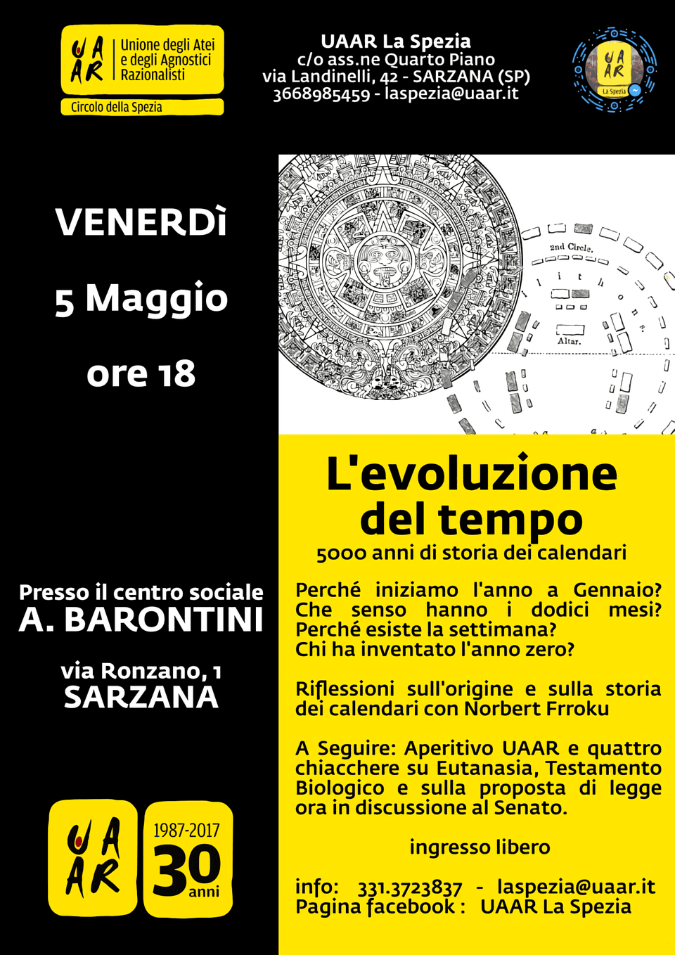 Ospite relatore Norbert Frroku, per un breve viaggio nella storia e rispondere alle tante domande: Perché l’anno inizia a gennaio? Che senso hanno i 12 mesi? Perché esiste la settimana? Chi ha inventato l’anno zero?