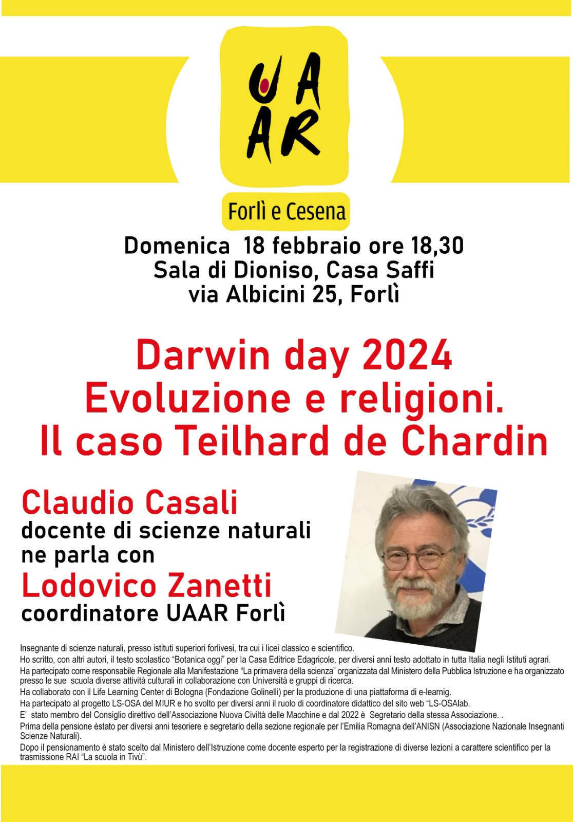 Claudio Casali, docente di scienze naturali ne parla con Lodovico Zanetti coordinatore UAAR Forlì