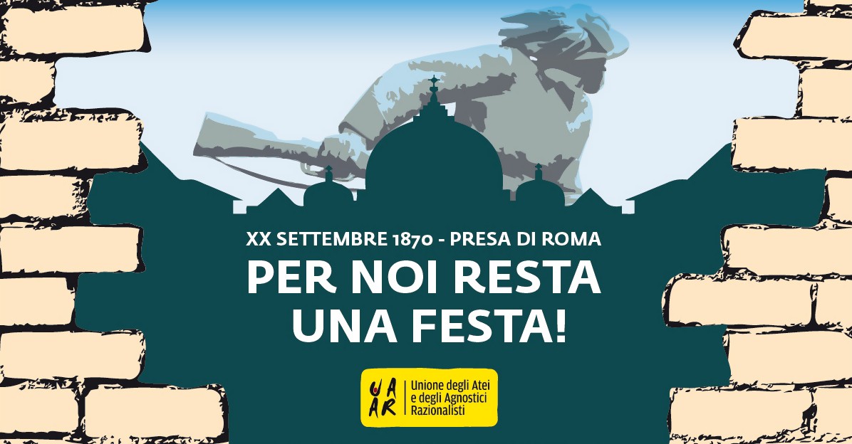 Domani XX Settembre ricorre l’anniversario della Presa di Roma (1870), che per noi persone atee e agnostiche resta una festa: la riconquista di uno spazio pubblico laico, fondamento indispensabile di progresso e diritti civili.