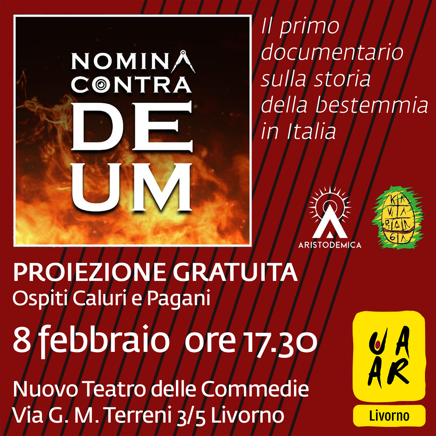 La proiezione ha la durata di poco più di un’ora. Seguirà un dibattito a cui parteciperanno Emiliano Pagani e Daniele Caluri, presenti nel documentario stesso. I noti vignettisti satirici, la cui fama ha ormai oltrepassato da tempo i confini labronici, hanno fatto arte della blasfemia, sicuramente non senza incontrare problemi… Sarà un piacere per noi ascoltarli.