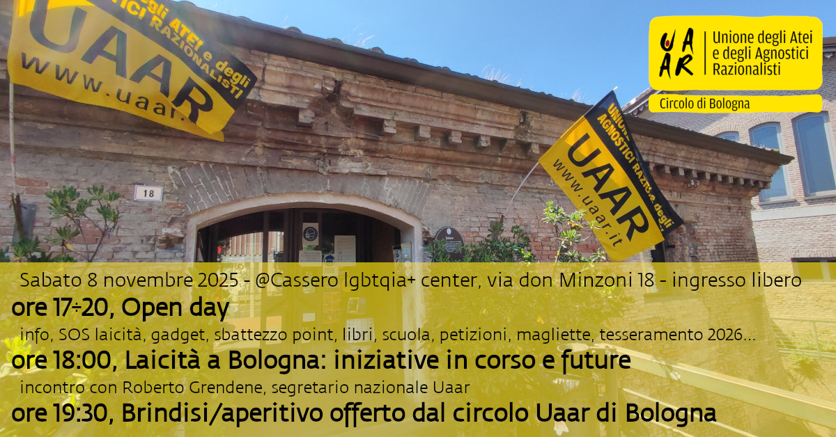 - ore 18, Laicità a Bologna: iniziative in corso e future. Parliamone assieme.