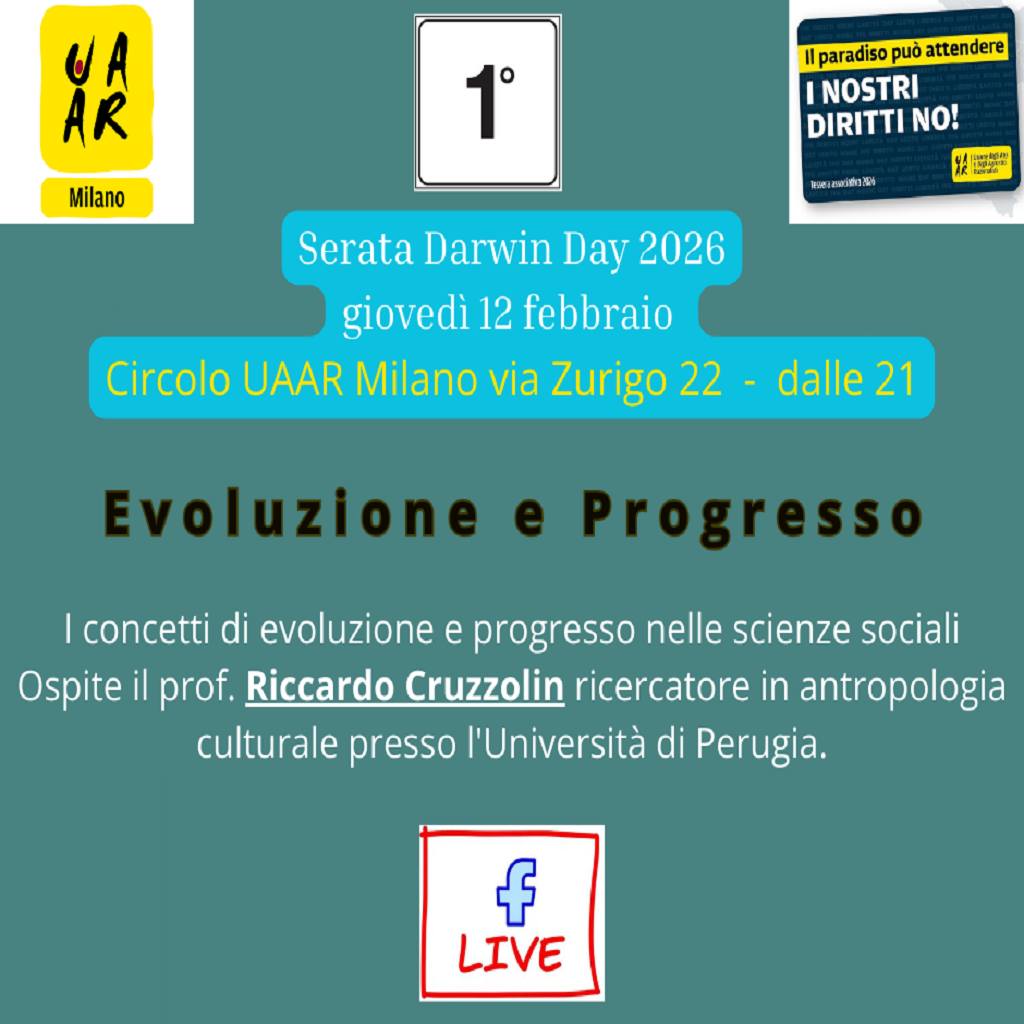 L’UAAR di Lucca è lieto di invitare i soci e la cittadinanza all’evento online che si terrà mercoledì 28 gennaio alle ore 21:00 con: